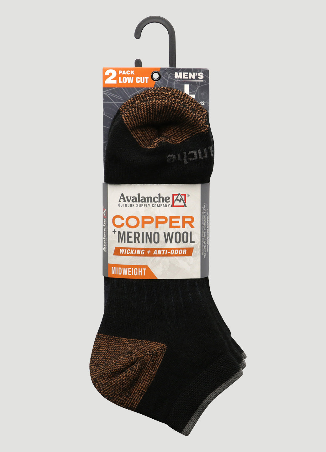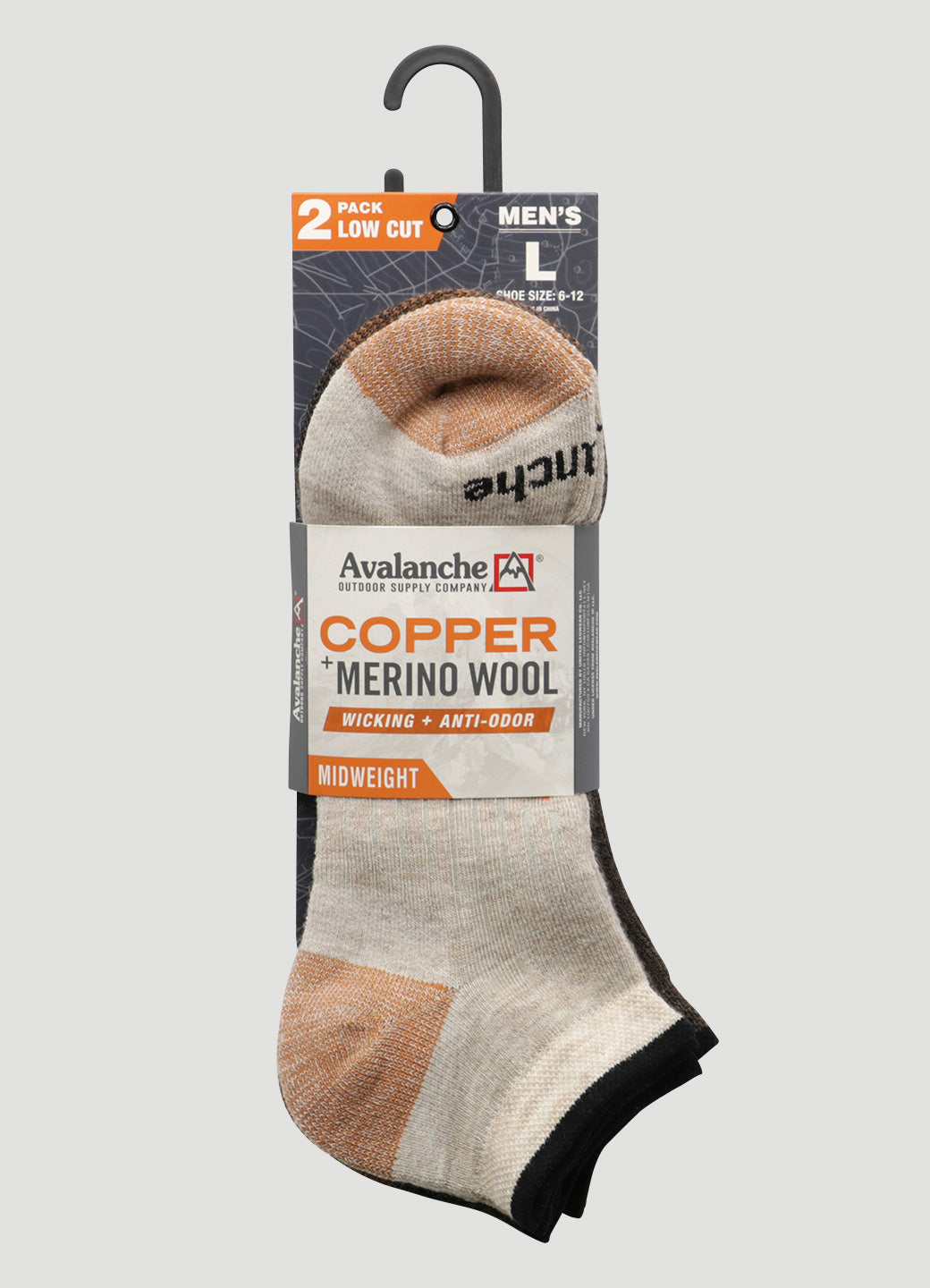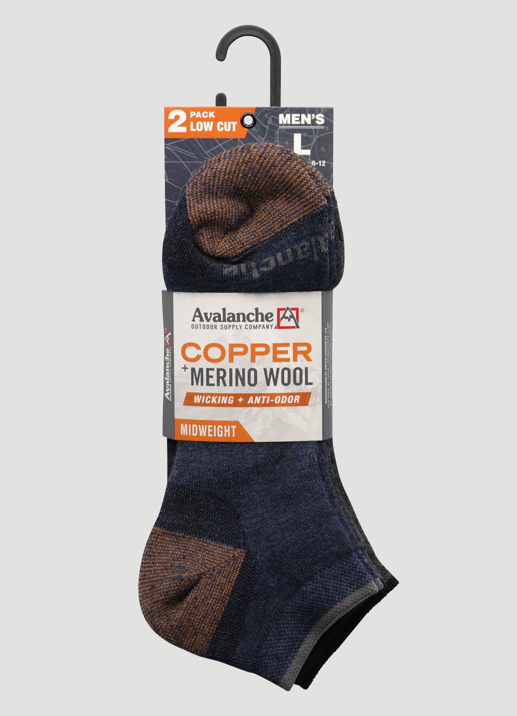 Walk through your days with ease in our Men's Copper Infused Low Cut Socks. These midweight socks are constructed from a sweat-wicking blended Merino wool fabric infused with copper yarn. The copper yarn allows for anti-odor protection while also promoting circulation. A fully cushioned design with arch support ensures comfort and support all day long. Breathable and durable, these low cut socks are made for your active lifestyle. Style Number: