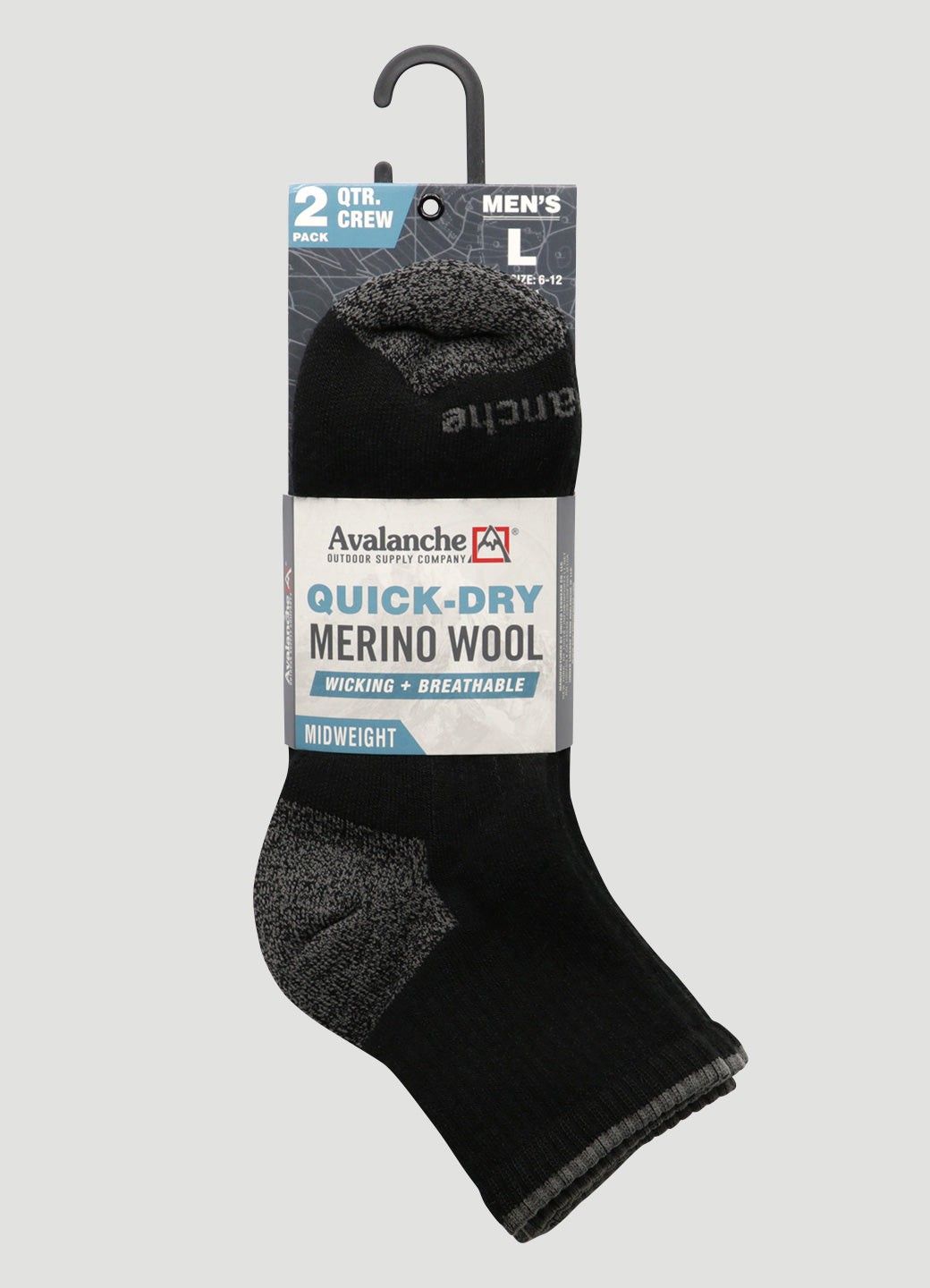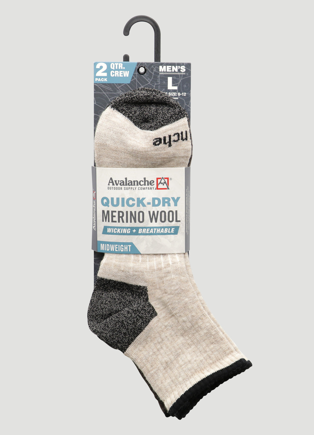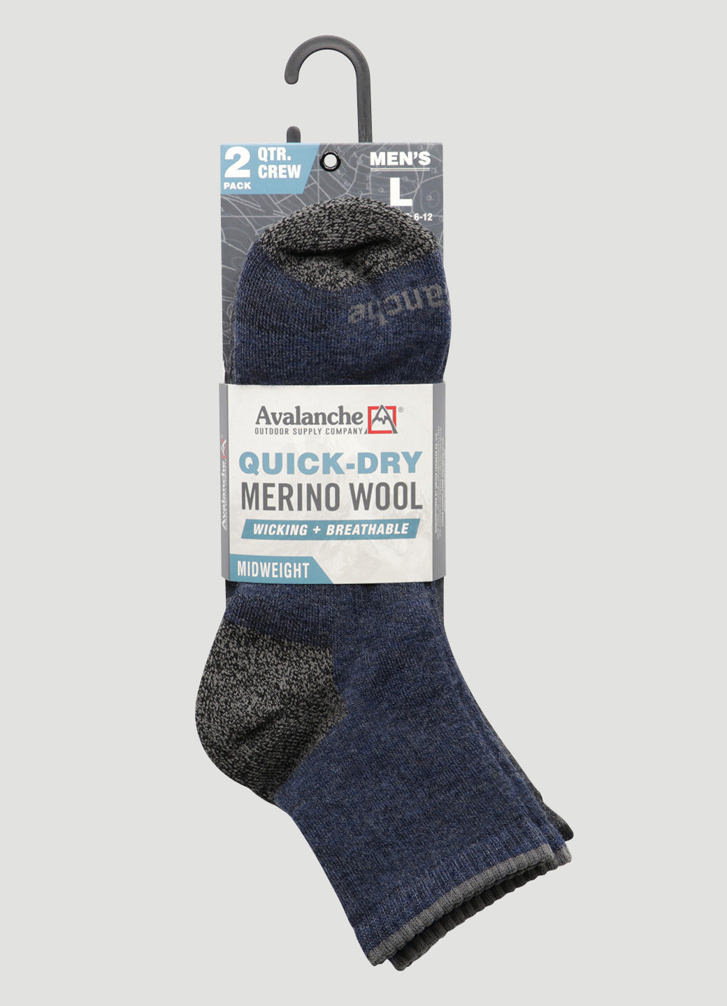 Men's Quick Dry Merino Quarter Crew Socks 2-Pack
