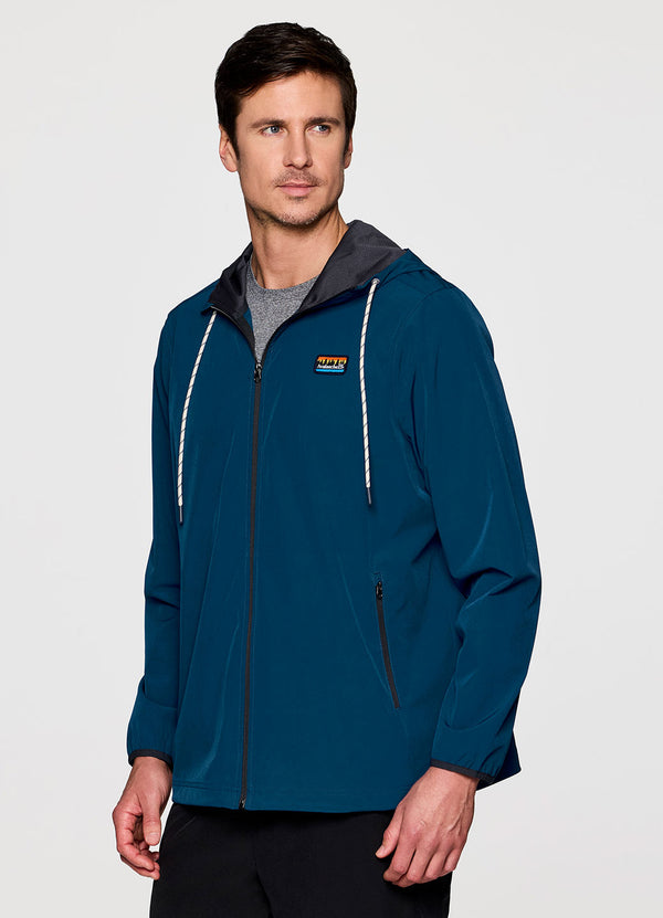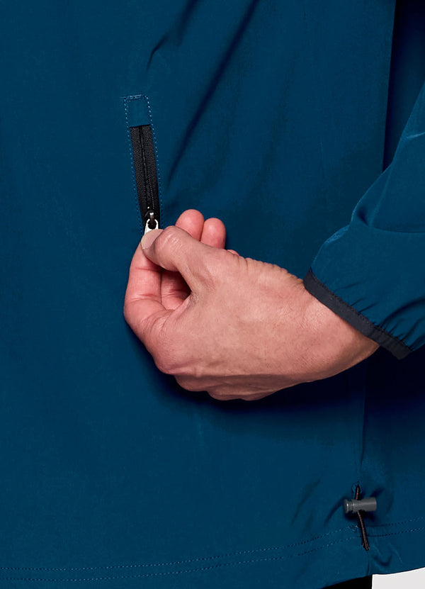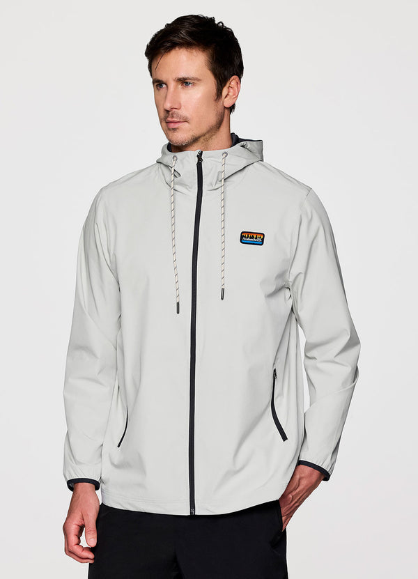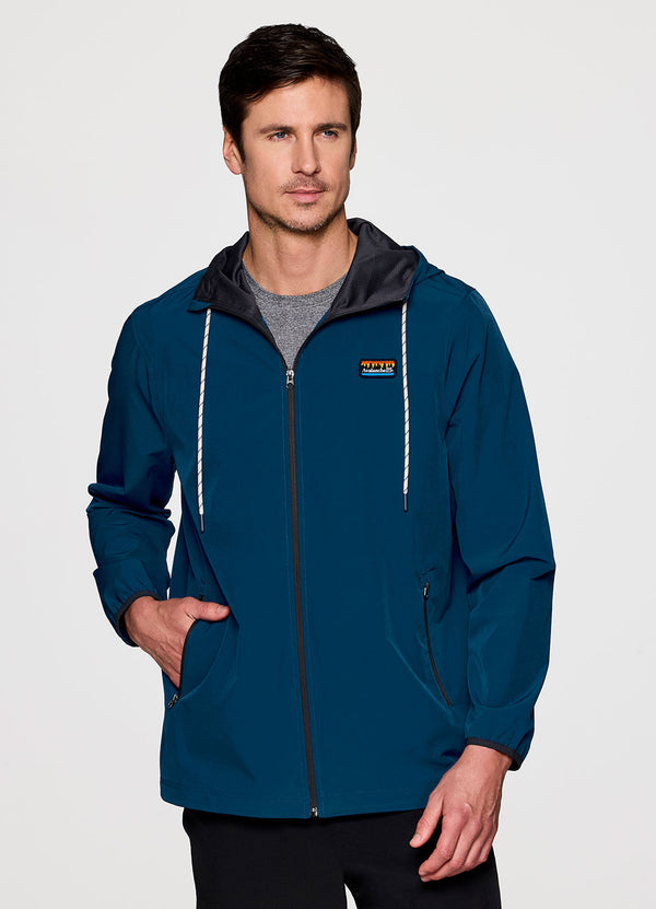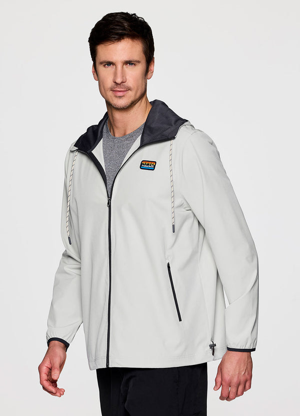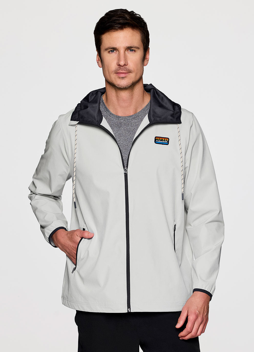 Embrace the elements in our Trail Days Hooded Windbreaker. This zip up rain jacket for men includes an attached hood with adjustable drawstrings, a full zip closure and adjustable bungee drawcord hem to help shield you from the elements while allowing for easy layering. Quick drying and lightweight shell fabric helps repel water while side pockets stores the essentials for a hands-free experience.