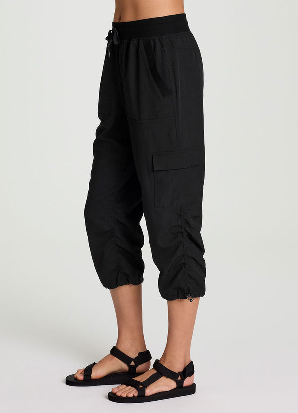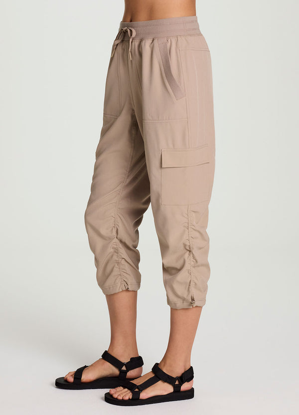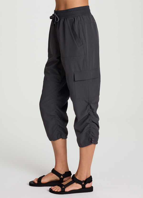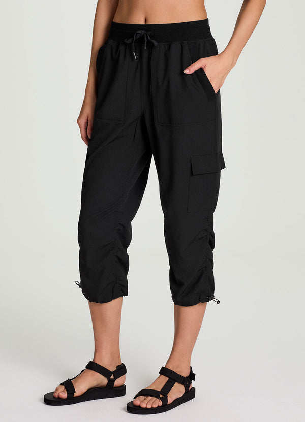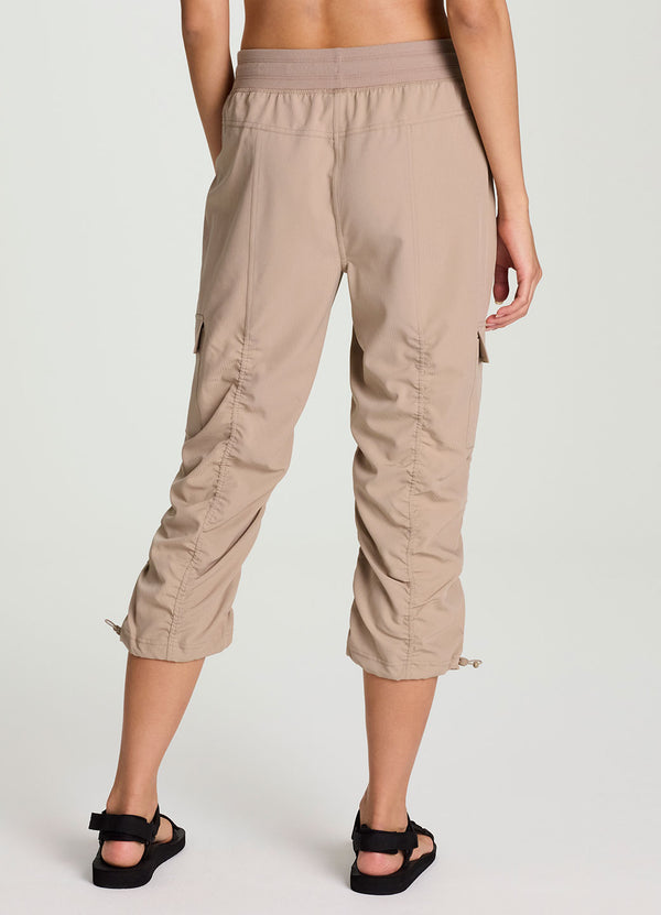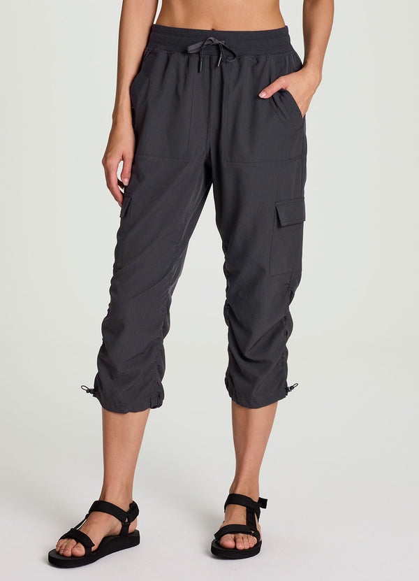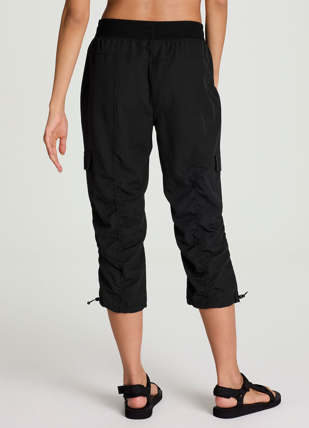 Designed with functional versatility in mind, our Valley Cargo Capri Pant features side pockets and cargo style pockets to store all of your essentials, while an adjustable waistband and leg opening allow for a more customized and secure fit. The lightweight, quick-drying stretch woven fabric features a subtle shadow stripe effect to elevate your look, plus it's designed to dry quickly to keep you comfortable during any activity from hikes or vacation adventures to everyday errands around town. Finished with flattering leg shirring and seaming detail that's easy to style for any occasion.