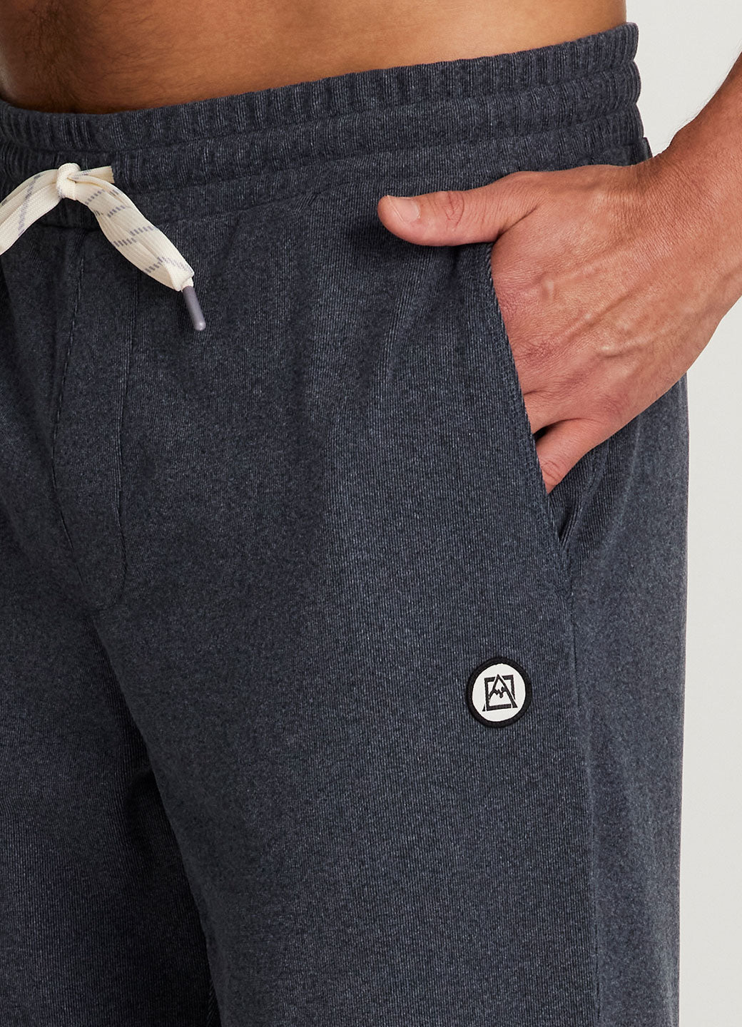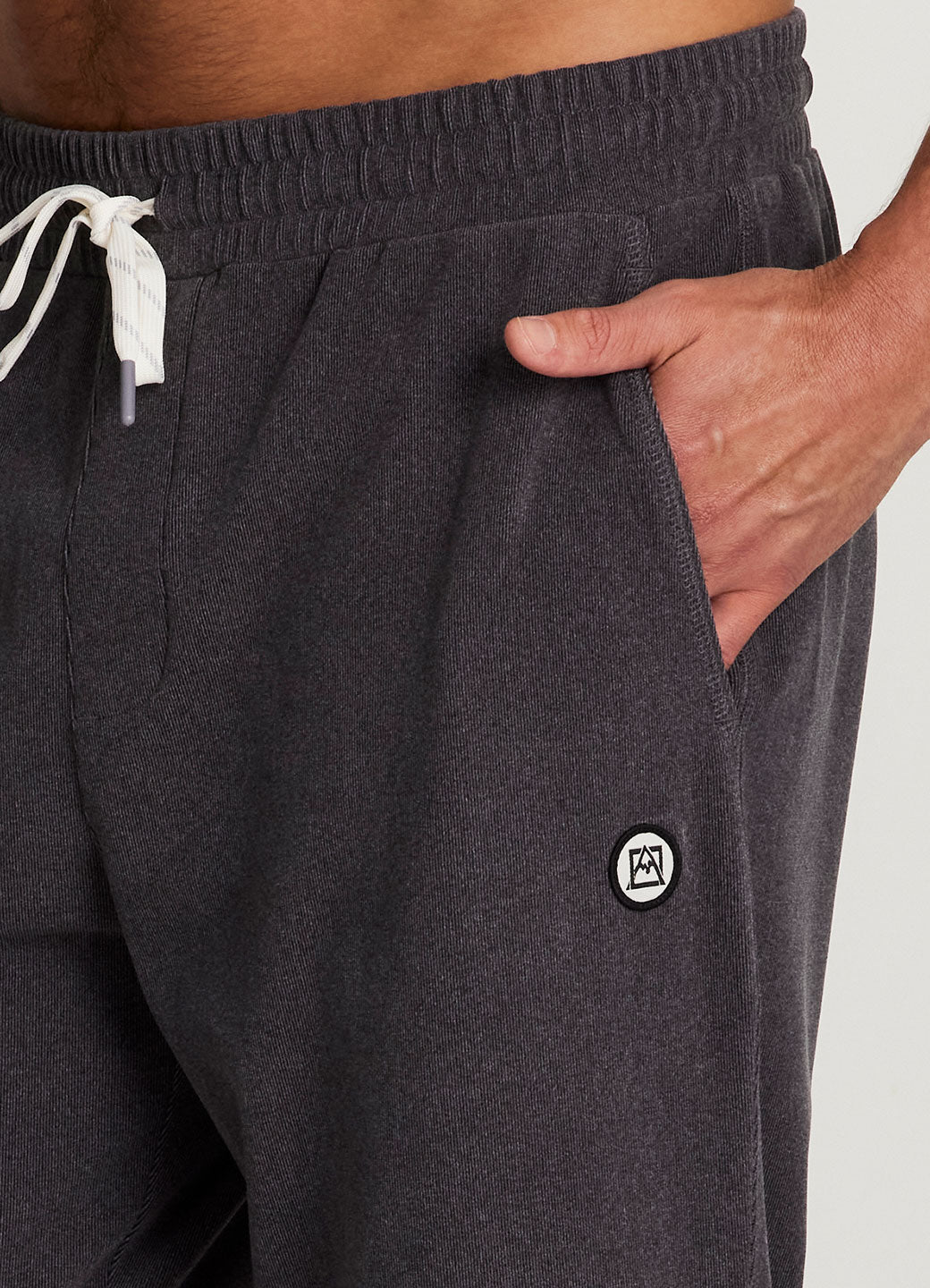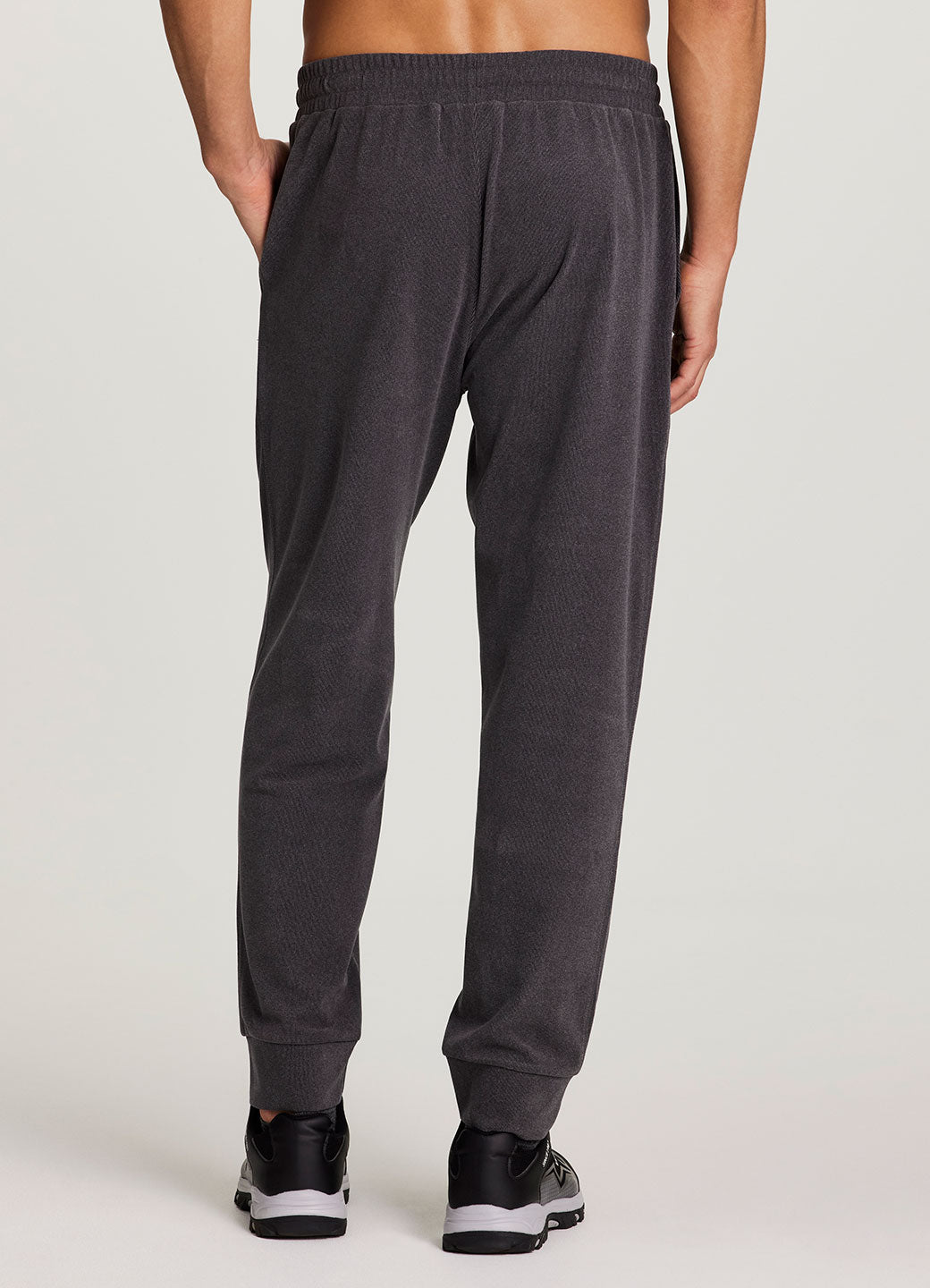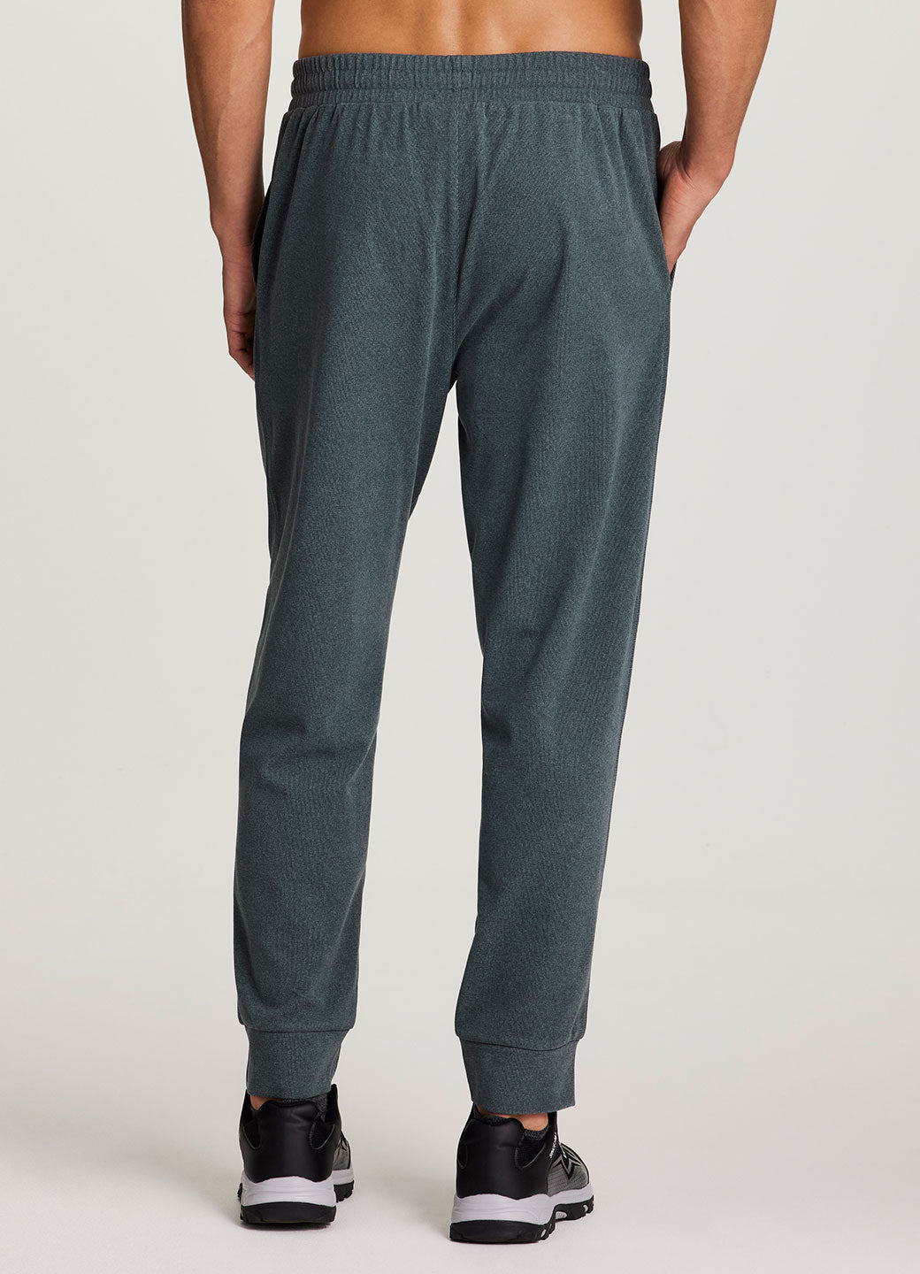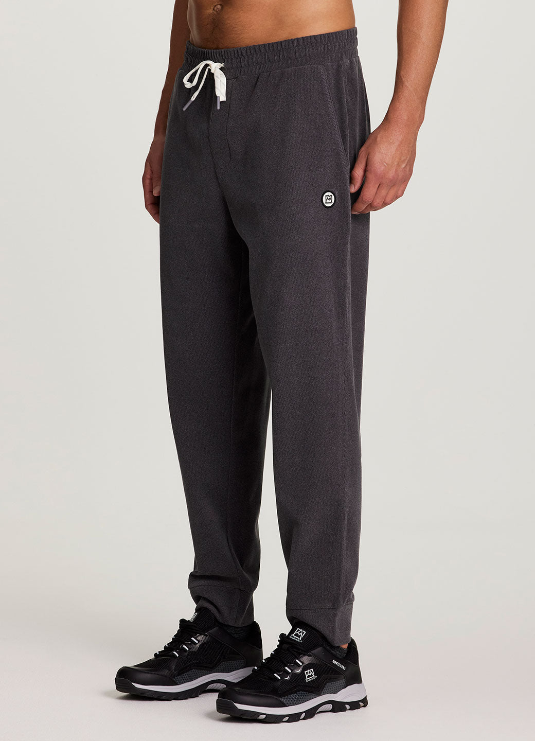 Traditional tapered leg jogger design with ankle cuffs and faux fly detail