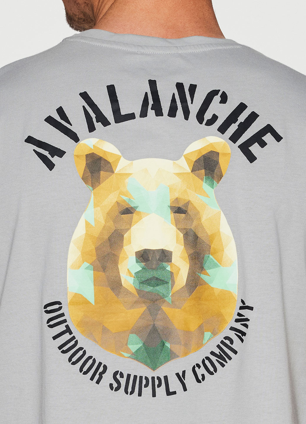 Soft ink printed pixelated bear graphic logo on back