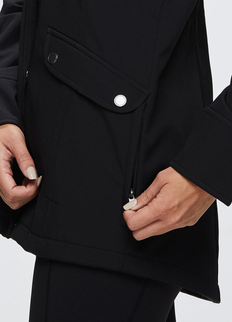Soft shell exterior fabric helps repel water and protect against other environmental factors