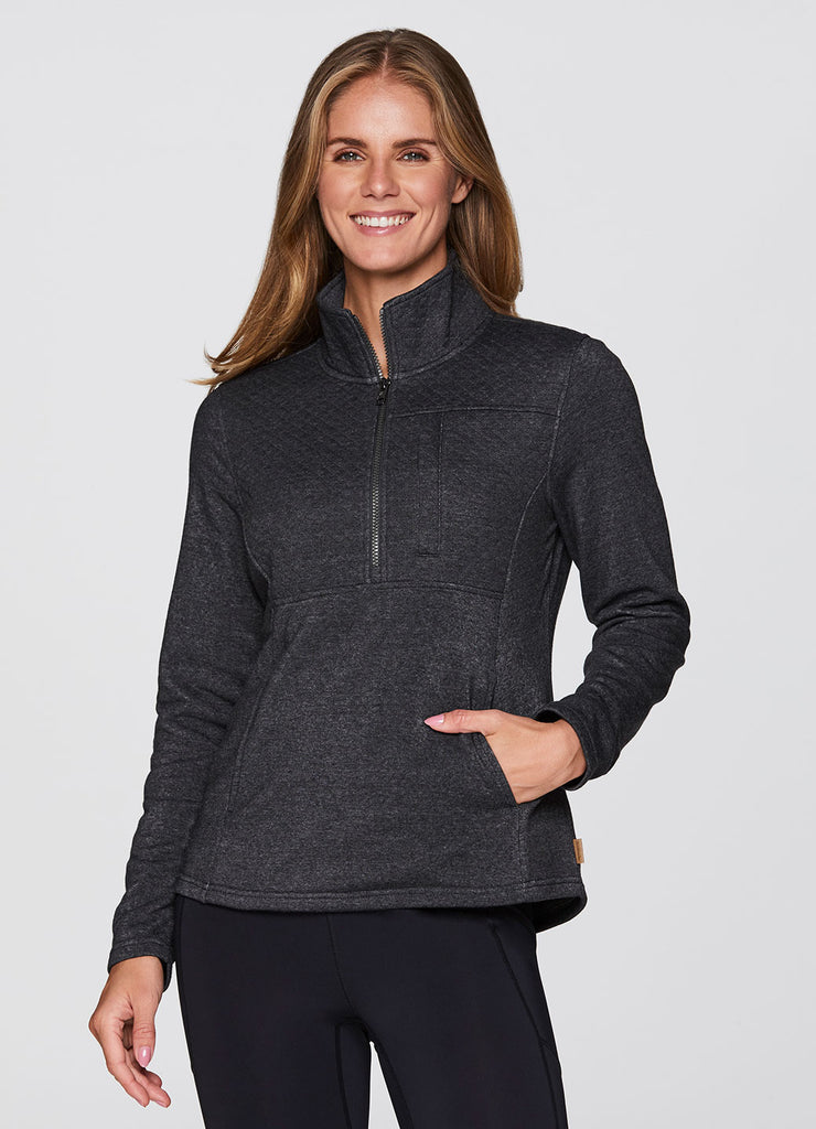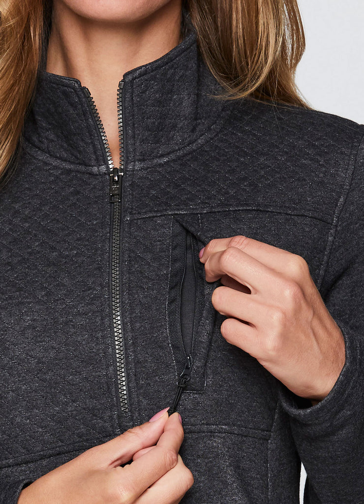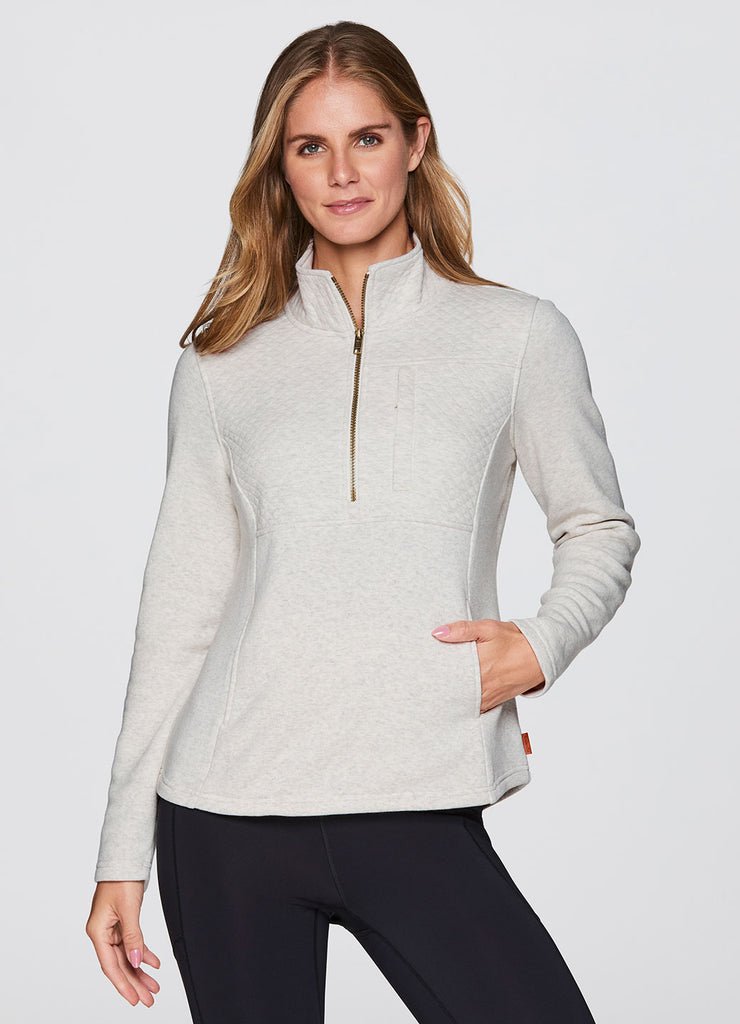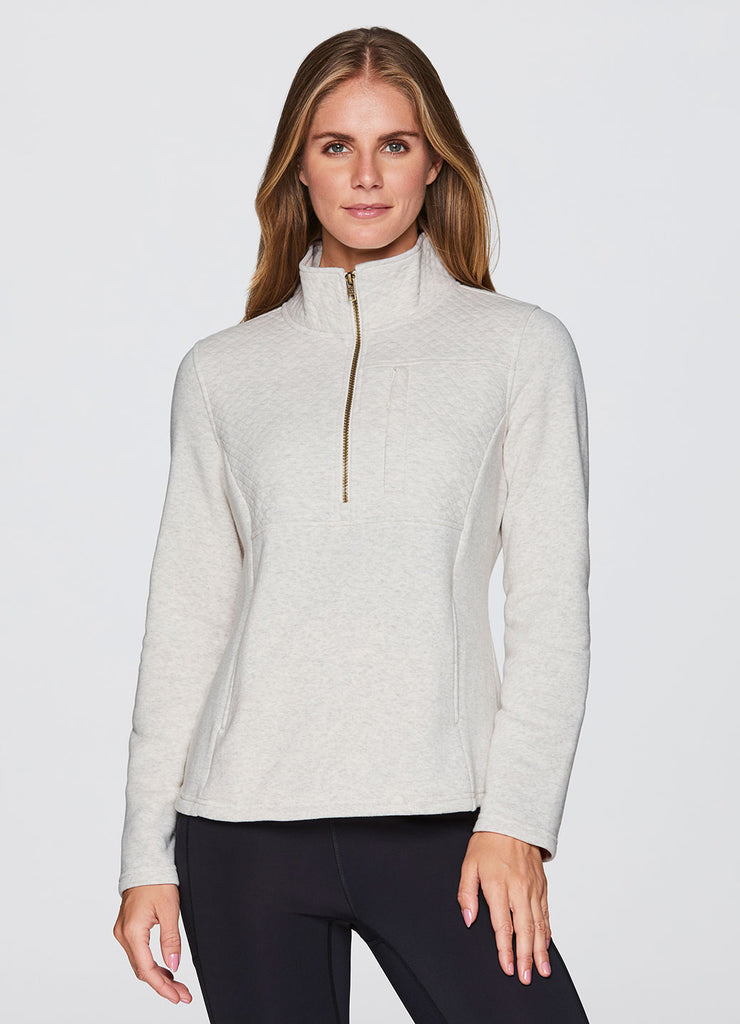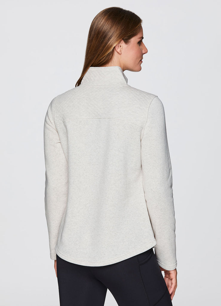 Partial zip design with mock neck that fully zips up for optional extra coverage and warmth