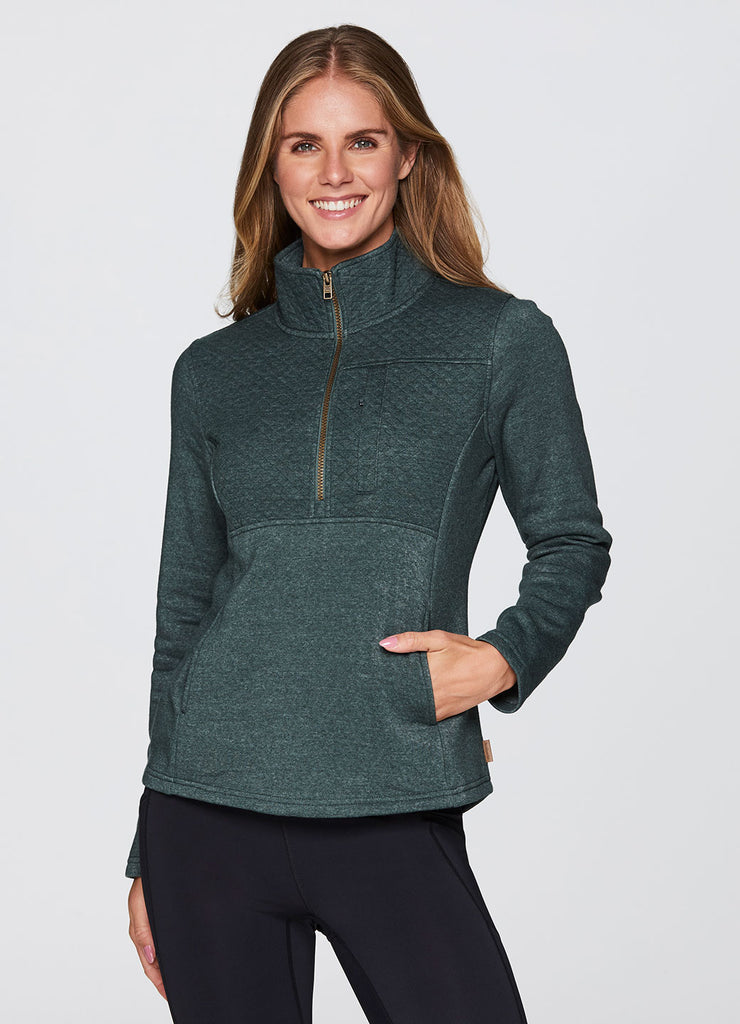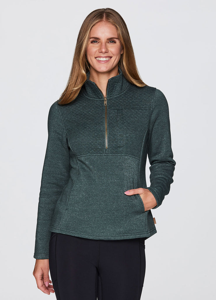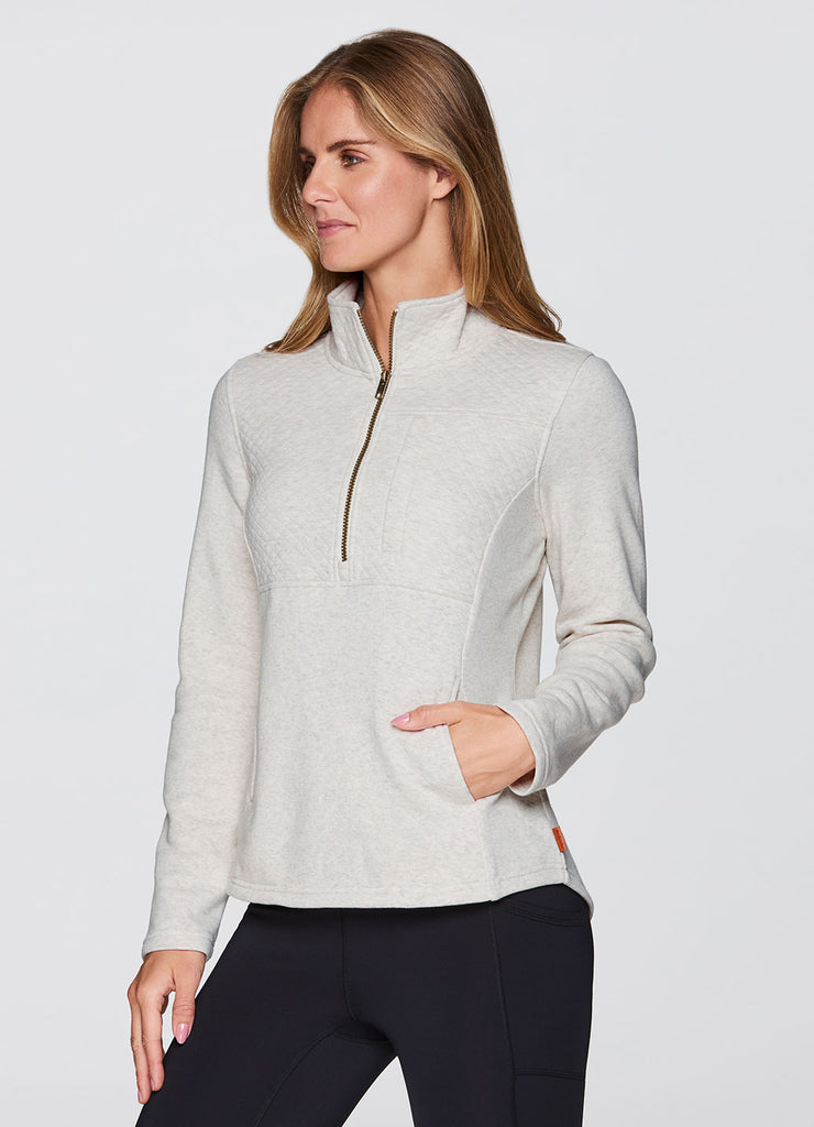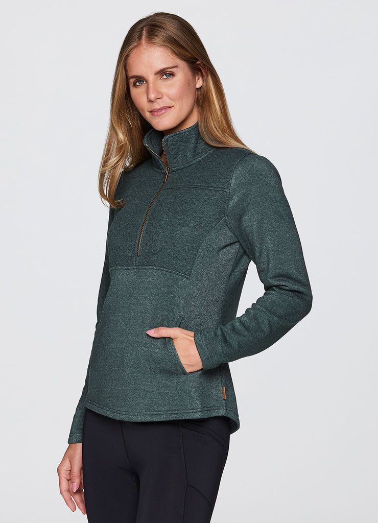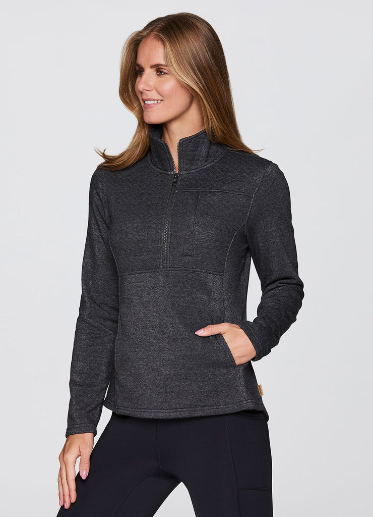 Partial zip design with mock neck that fully zips up for optional extra coverage and warmth