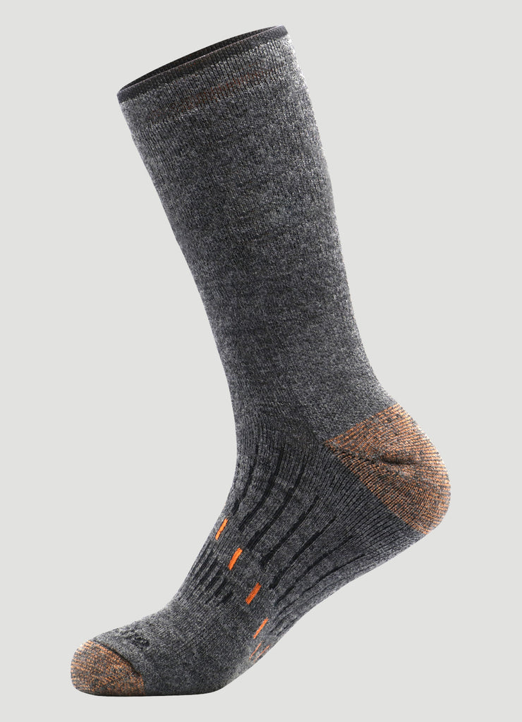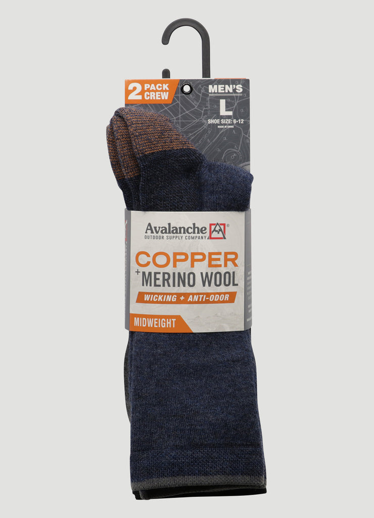 Walk through your days with ease in our Men's Copper Infused Crew Socks. These midweight socks are constructed from a sweat-wicking blended Merino wool fabric infused with copper yarn. The copper yarn allows for anti-odor protection while also promoting circulation. A fully cushioned design with arch support ensures comfort and support all day long. Breathable and durable, these crew socks are made for your active lifestyle.