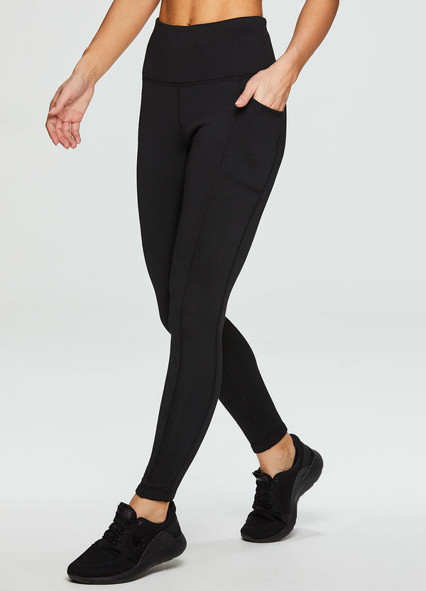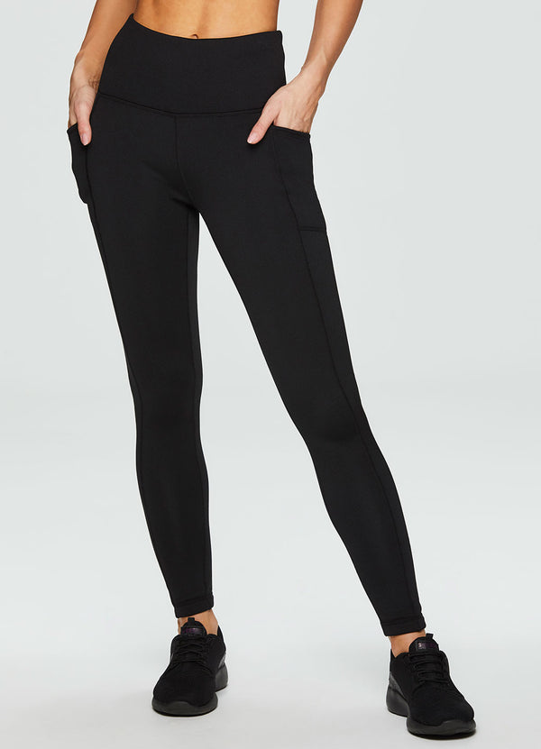 Hit the trails in the Mogul Fleece Lined Legging with Pockets. This full length legging is lined with a soft brushed fleece lining that keeps you warm during those cold weather hikes or workouts. Two side pockets conveniently hold your cell phone, wallet, earbuds and other small essentials. Complete with a supportive high waistband, this fleece legging is perfect for your active lifestyle.