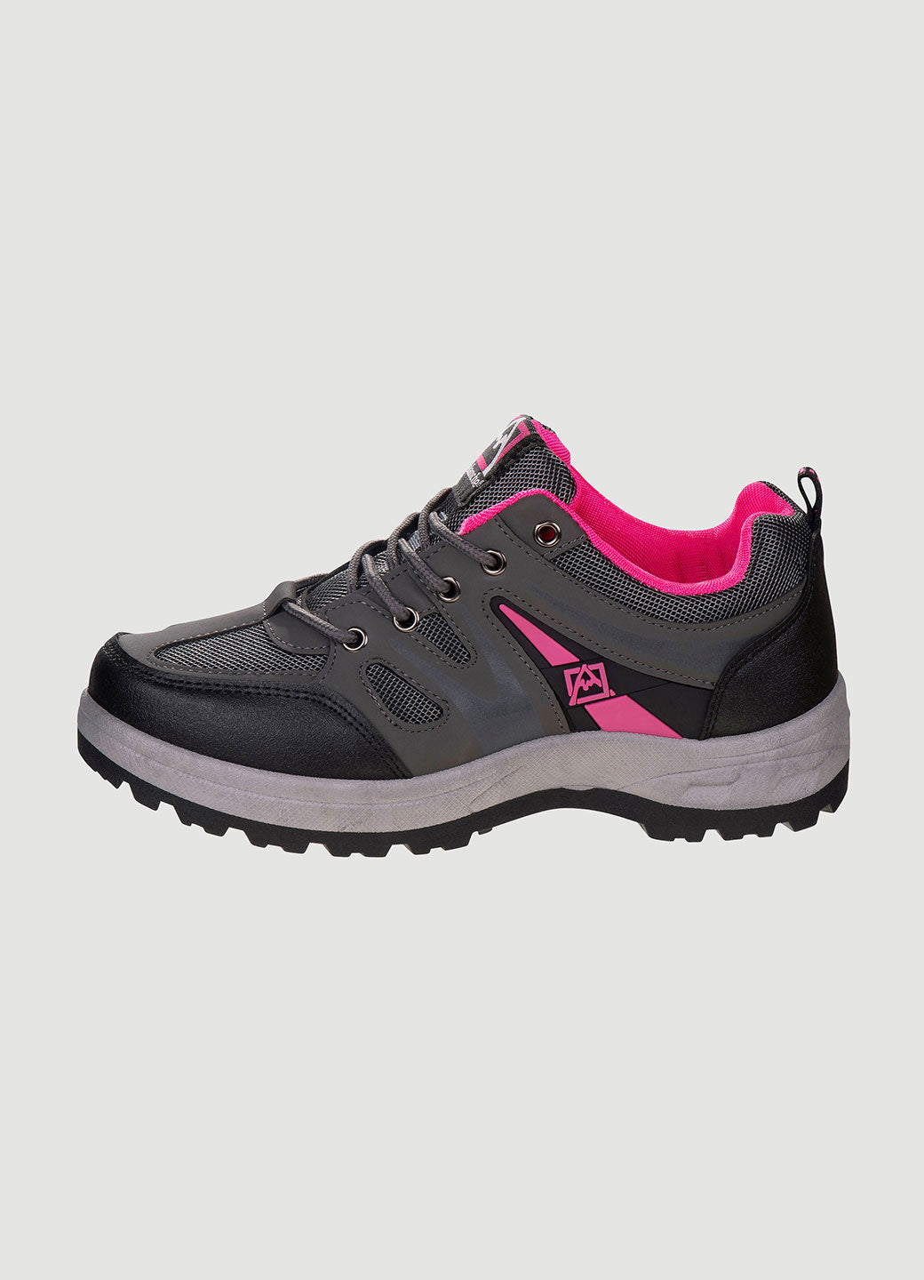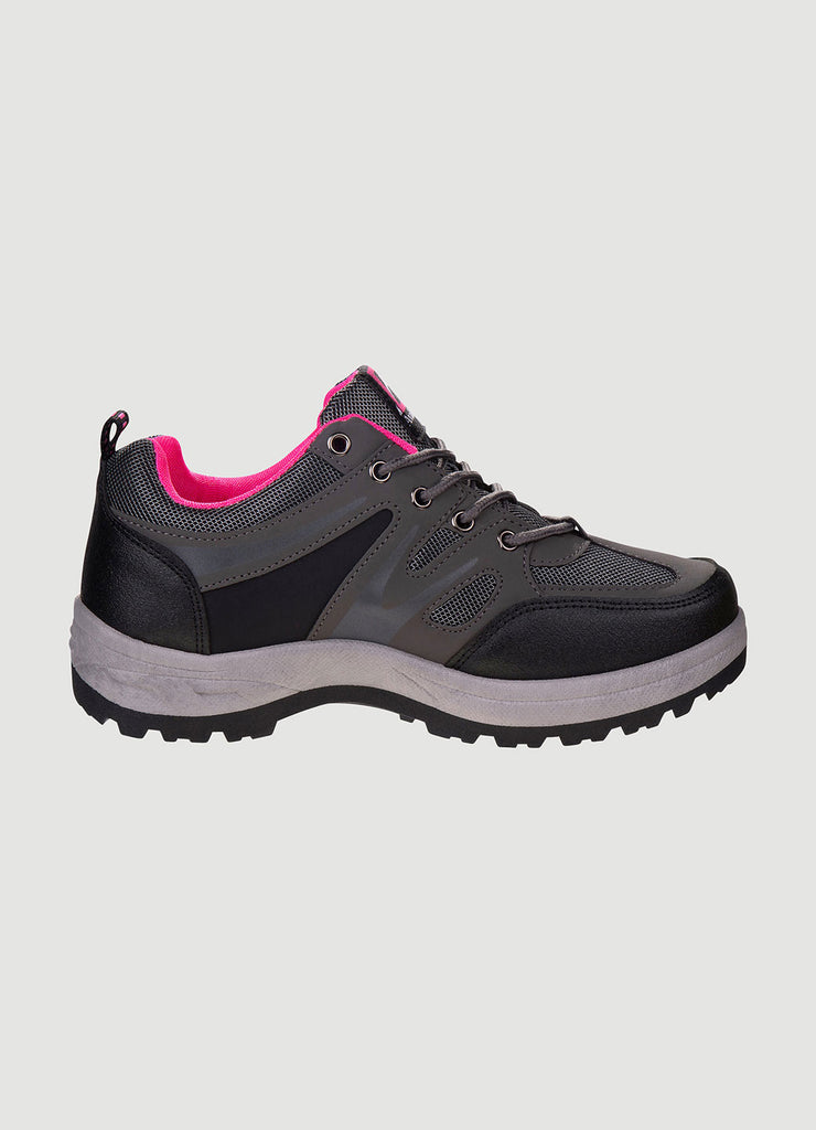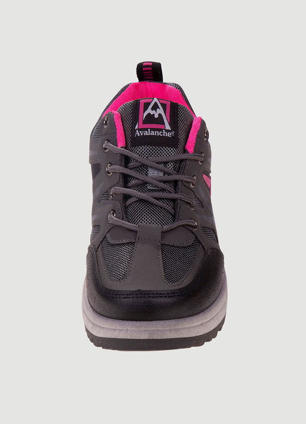 Whether hiking your favorite mountain trail or running an errand, these shoes are built for all use. With the traditional lace up closure, these hiking shoes are made with water resistant fabric and a treaded thermoplastic outsole to provide a secure grip during your wear. The moderately cushioned insole will keep you comfortable. With the added pull tab in the back, you can easily slip these sneakers on and off.