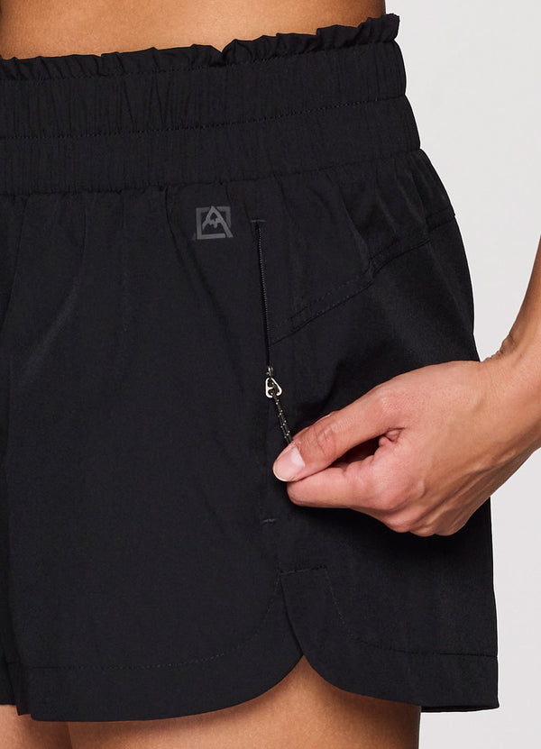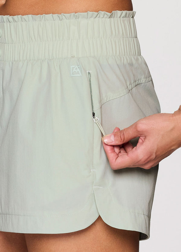 Upgrade your walks today (and look and feel great while doing it!) with our Under The Falls Short. Designed with a flattering fit and feminine scrunched elastic waistband complete with faux buttons and faux fly detail to elevate the versatility of these cute shorts, you can experience functional comfort without sacrificing style. Zipper pockets help you stay organized and hands-free throughtout wear, and quick drying woven fabric is perfect to take from the hiking trails to brunch with friends.
